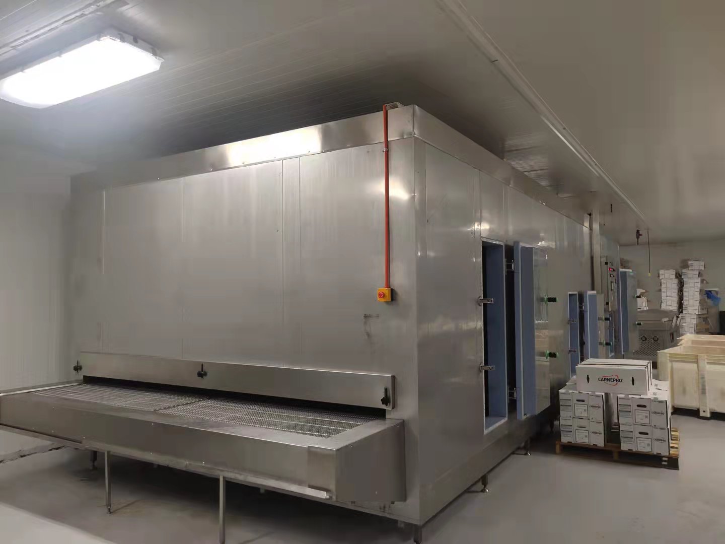 这是一台500kg/隧道式速冻机出口墨西哥,客户主要冻结鸡大胸,